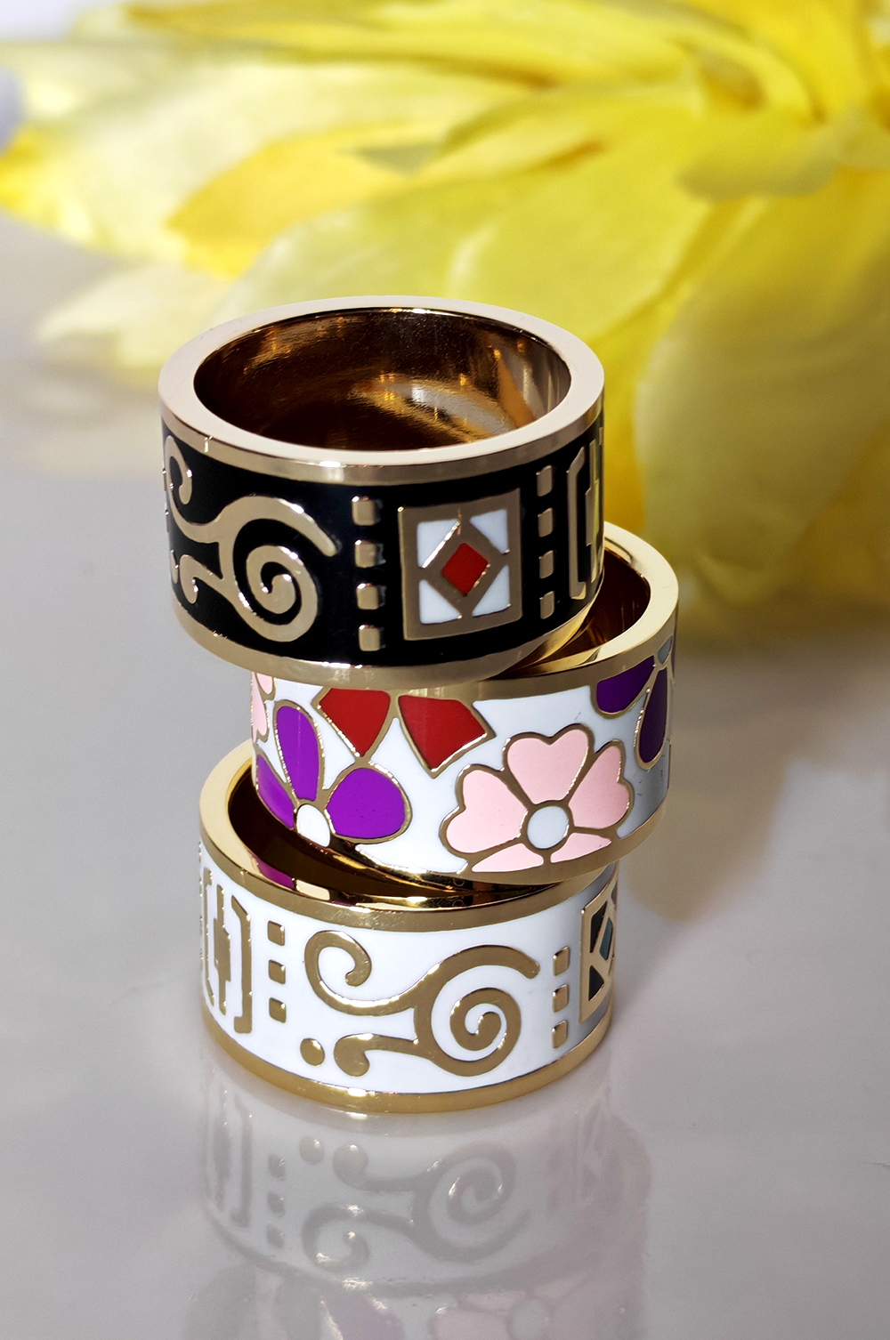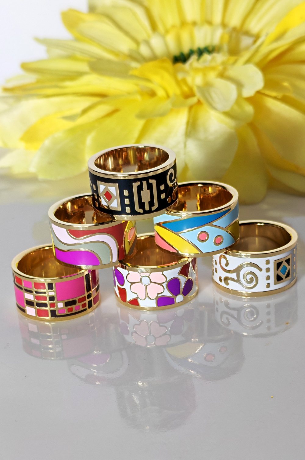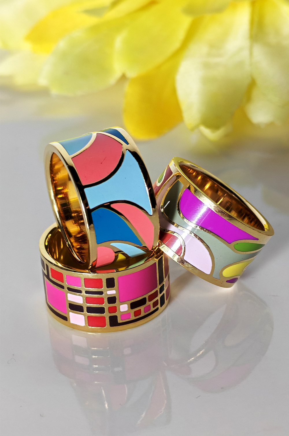 Designed for women who appreciate refined details, The Luxe Enamel Hijab Ring is a superior-quality styling accessory crafted to elevate your hijab with ease and elegance. Finished in a high-shine gold tone and adorned with vibrant, sophisticated enamel designs, this ring is beautifully weighted, offering a secure and polished drape – especially ideal for thicker hijab fabrics. The smooth interior ensures it glides effortlessly over fabric without snagging, protecting your hijabs while keeping them perfectly in place.